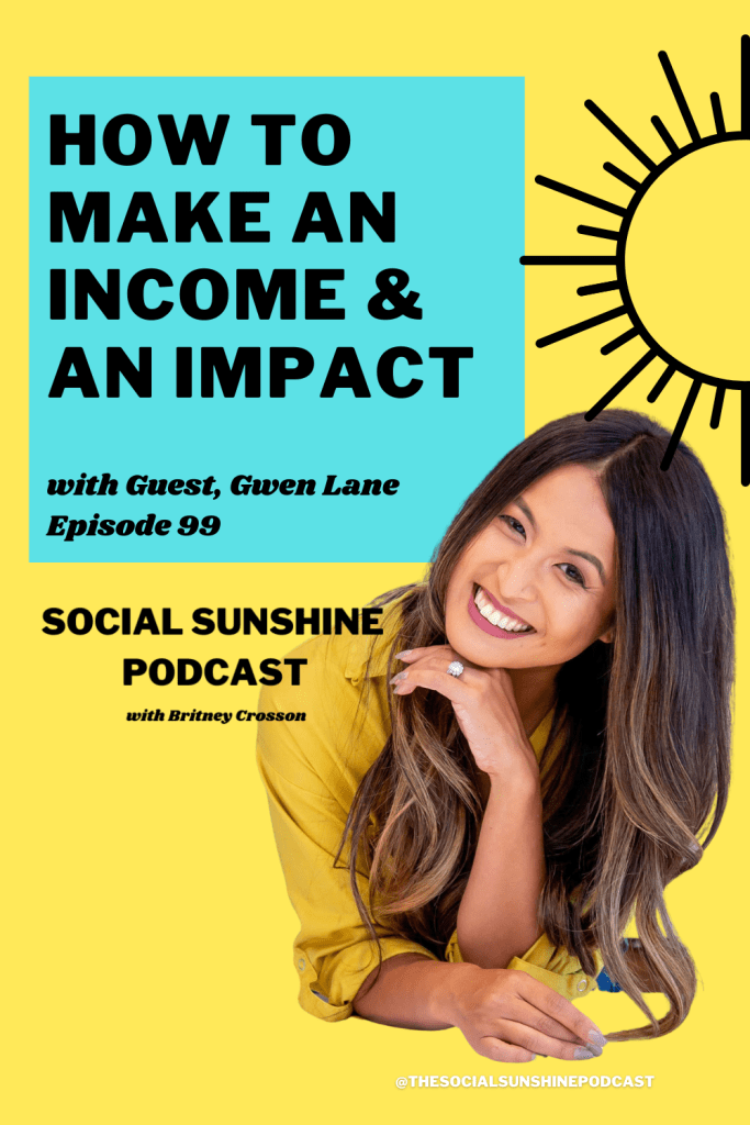 In this episode, Gwen shares her amazing entrepreneurial journey to inspire others to make an impact and make money. She’s here to help you build and grow influence in a strategic and sustainable way, without doing all the things, so that you can focus on generating revenue while making a positive impact on your clients and the world.