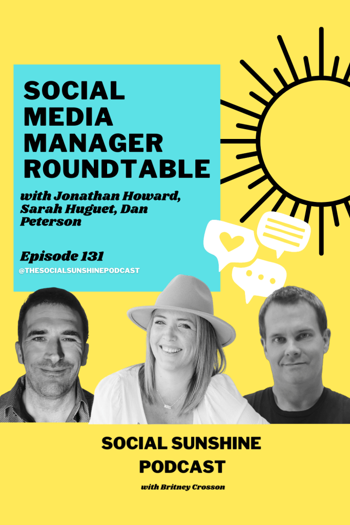 Ever wonder what it’s like managing other social media accounts 𝘧𝘰𝘳 𝘢 𝘭𝘪𝘷𝘪𝘯𝘨? Britney chats with 3 creative professionals that help small businesses market themselves across a diverse range of popular apps in this special roundtable-style episode. Join Jonathan Howard, Sarah Huguet, & Dan Peterson in an entertaining chat about the world of social media managers, their expert tips, and crazy client stories.