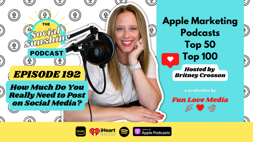 Should you be posting every single day? Britney’s answer might pleasantly surprise you. In this episode, host and owner of Fun Love Media, Britney Crosson shares a detailed explanation of how to decide how often you should be posting on social media. Not everyone needs to post the same amount of times every week. By the end of this episode you’ll know how often you should be posting and why.