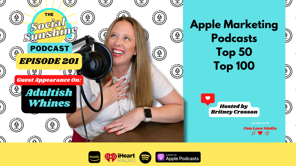 Social Media, cruise buffets, drinking, oh my! We’re sharing Britney’s guest appearance on the Adultish Whines podcast in this episode! This conversation between Britney and Adultish Whines host, Paige Crutcher, was too fun not to share. It’s not our typical kind of episode here at Social Sunshine, which is what makes it extra exciting!