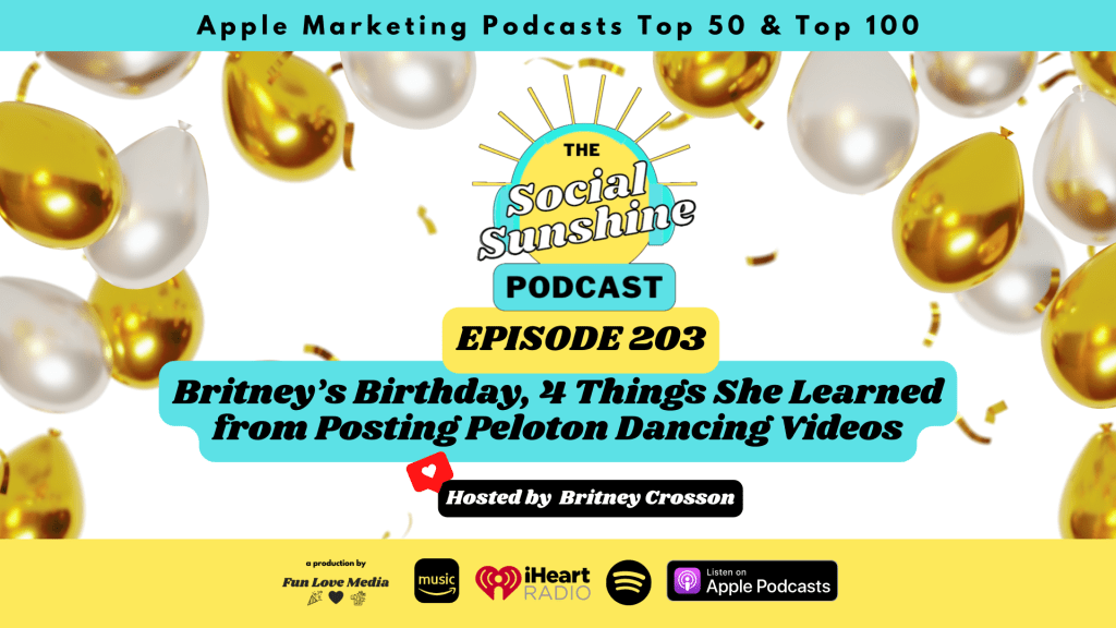 Happy 43rd Birthday to our host, Britney Crosson! Not only are there special appearances by Britney’s kids in this episode, but she also shares four important lessons she’s learned since she posted her very first Peloton bike dancing video back in November 2019. If you want to play the long game on social media so that your brand grows over time, this episode is perfect for you.