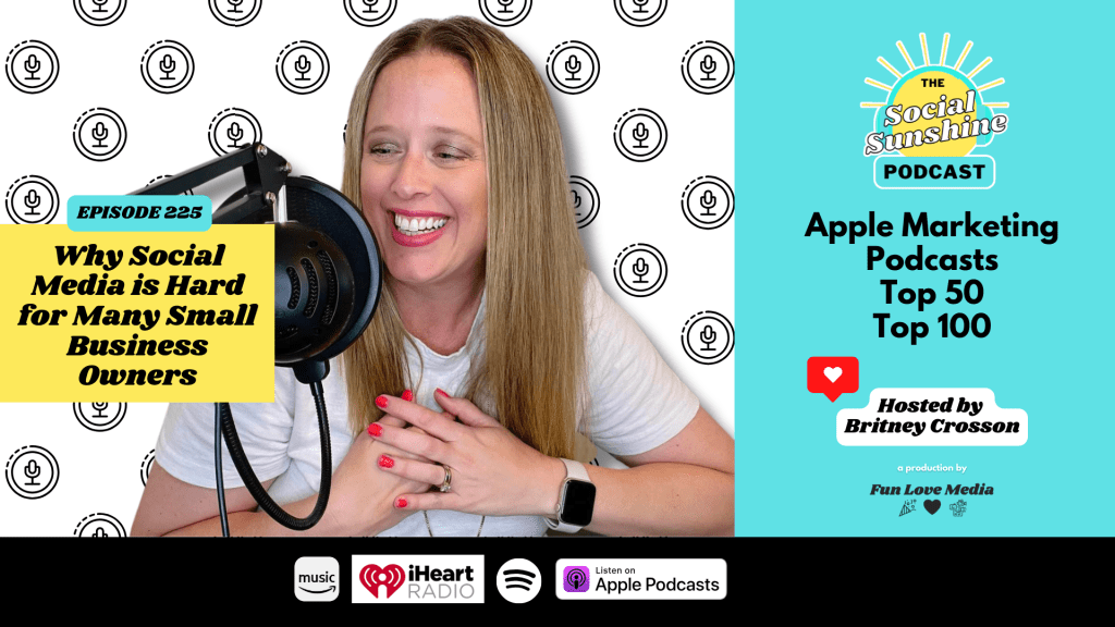 Social media can be really hard for small businesses. If you’re a small business owner trying to handle your business’s social media marketing, you might relate. Host, Britney Crosson, shares her 3 reasons why social media can be so hard for small business owners and how to overcome those challenges.