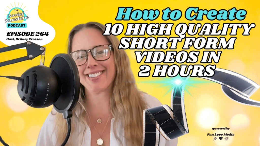 Need high quality content fast? This episode is for you. Just because you need to dive in and get it done quickly, it doesn’t mean your social media content has to be a mess. Host, Britney Crosson, teaches you exactly how to create 10 high quality short form videos for social media in just 2 hours. And she shares how you can do it if you want to talk on camera or if you don’t. This is a masterclass on this topic in just 20 minutes. You might want to take notes! We’d love to see your videos! DM the show on Instagram!